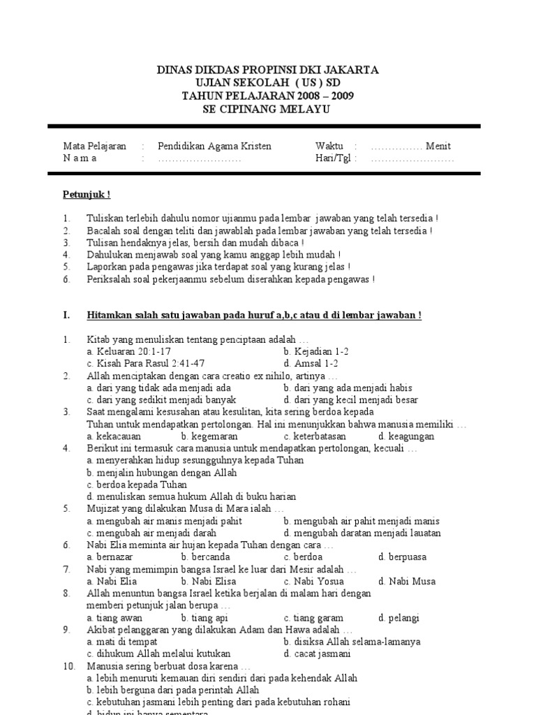 Unknown 12 Maret 2019 0459. Kristen sd lembar ujian praktek pa. Contoh soal agama katolik kelas 1 sampai 6 sd semester 2.